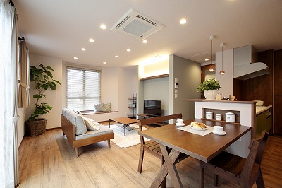 見せる収納と隠す収納を使い分け、自分の好きなものに囲まれて暮らしたいという希望を叶える空間。床はメープル柄(キャメル)。どんな色とも相性が良いです