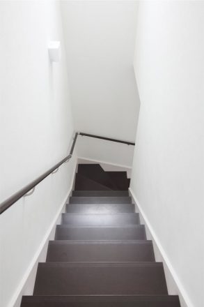 通常の高さより低く設定した腰壁は圧迫感を軽減。広い階段は家族皆が安全に使用できます。