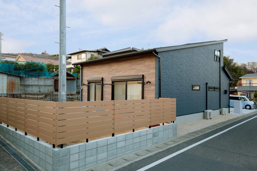 ネイビーブルーの外壁と木調のアクセントの組み合わせがスタイリッシュな佇まいに仕上がりました。