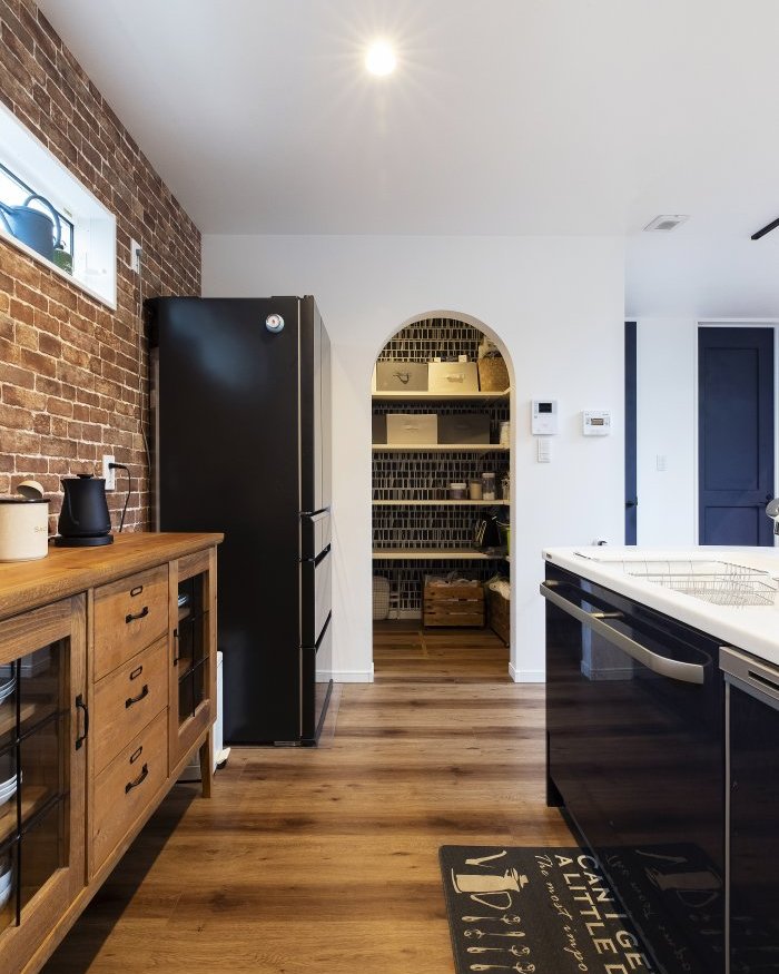 キッチンは奥さまご希望のレンガ調クロスを施しています。