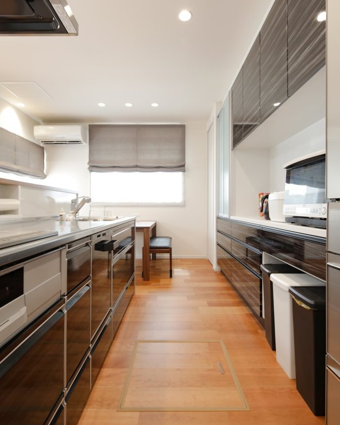 ドアを開放させると家じゅう回れる間取りになっており、また、物を床に置かないように収納を多く設けているので隅々までしっかりお掃除が可能。