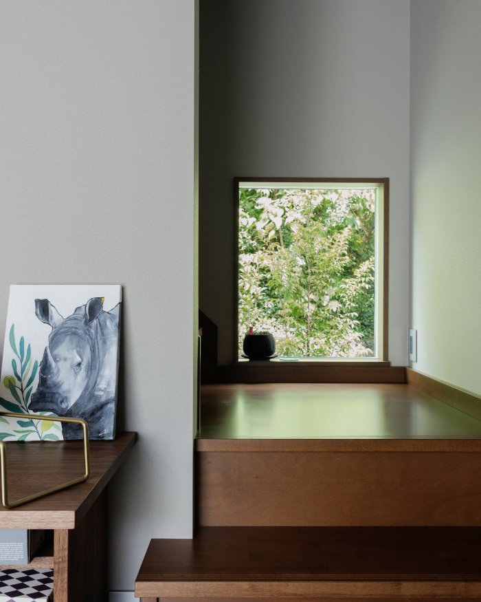 家づくりのマストだったヌックは、マットレス(マニフレックス)の大きさに合わせて2.25帖でプラン。「窓辺で眠り、自然の光で目覚めたい」と就寝の場ですが、ゲームなどの自分時間を過ごす場所として奥にカウンターを設けています。また、窓から庭の植栽が見える間取りにして『自分のための時間』をとびきり楽しむ工夫をしています。
