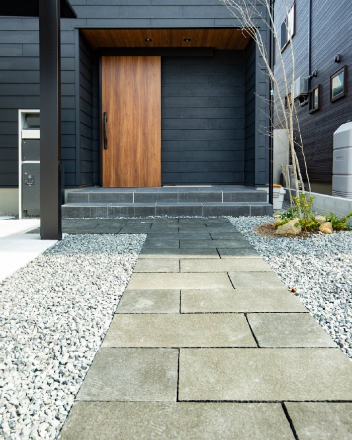 外からの視線をかわすため、あえて窓が少ないミニマルな外観デザイン。