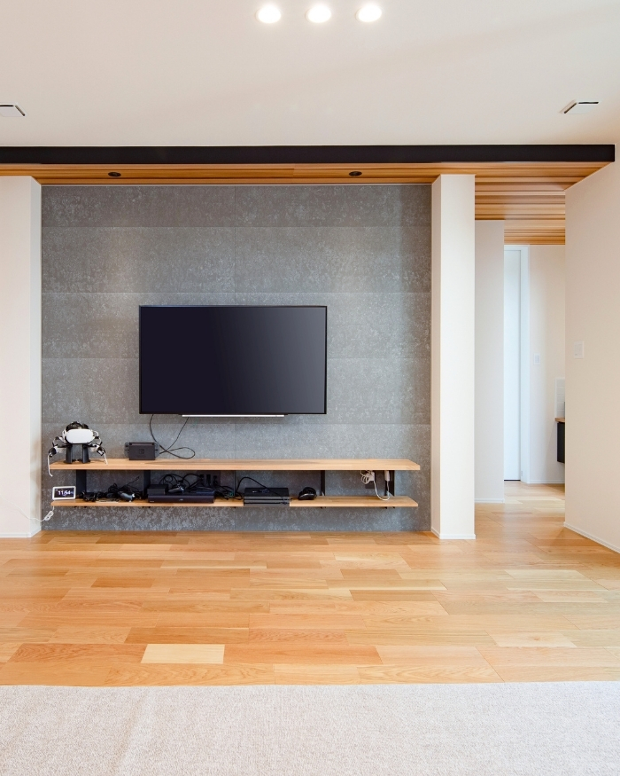 リビングを起点とするH様邸は、家のどこにいても家族の気配が感じられ、居心地の良さと安心感を生み出しています。